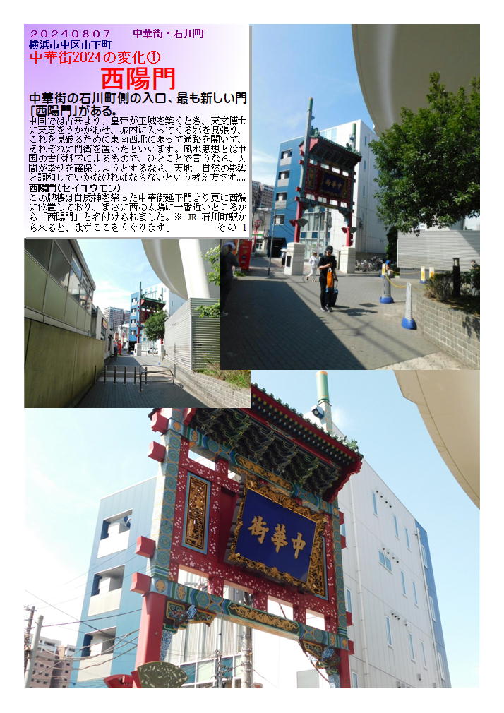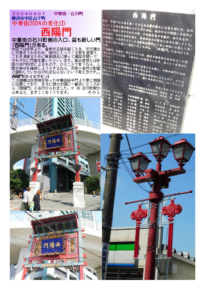 中華街の石川町側の入口、最も新しい門「西陽門」がある。