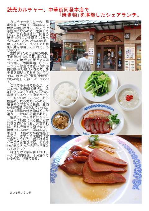 埼玉に仕事を移してからどうも中華街に行く機会が減少している。テレビ局等からの問い合わせも多くなり、現在はカルチャーセンターからの以来も多くなってきた。何かの機会を作って行かないと、案内・食べるだけで1日仕事となる。読売カルチャーおかげて、中華街の案内も3年目となる。ありがたいことである。