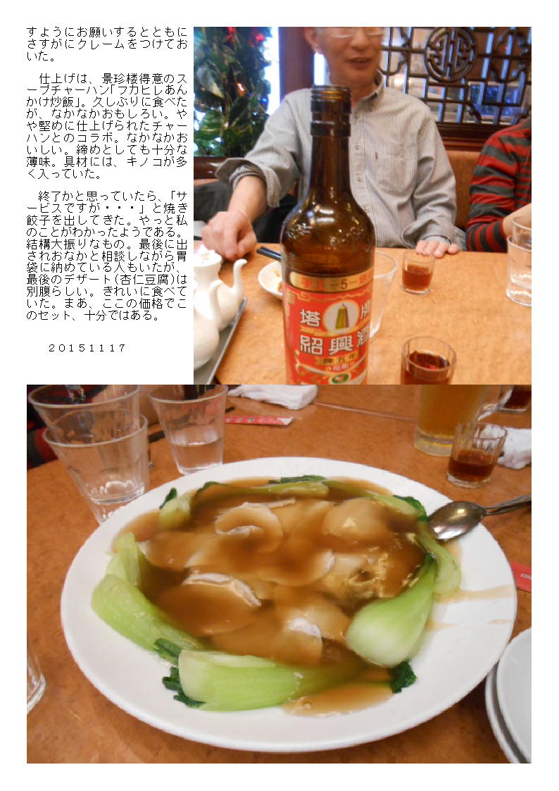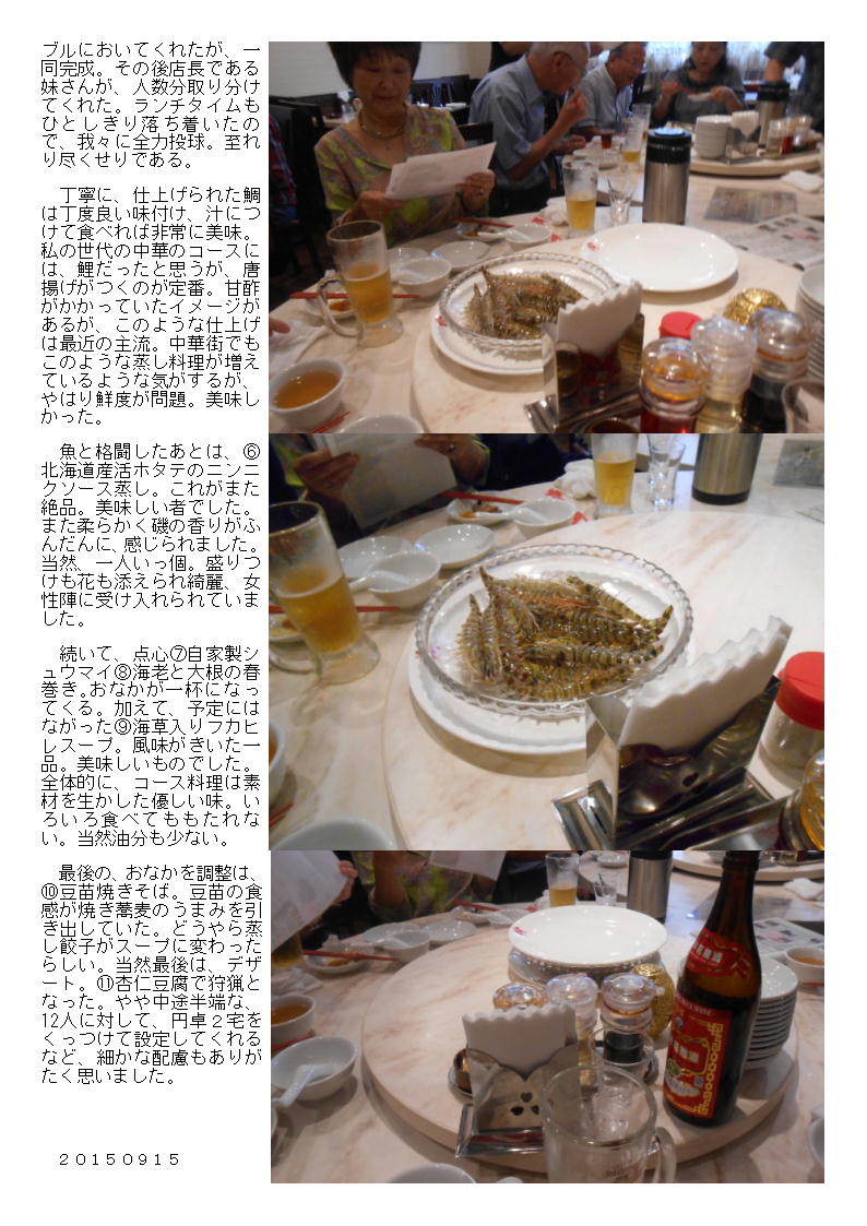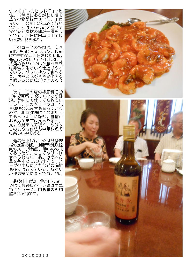 翡翠楼本店で、再び 「3000円とくとくコース」 20150818