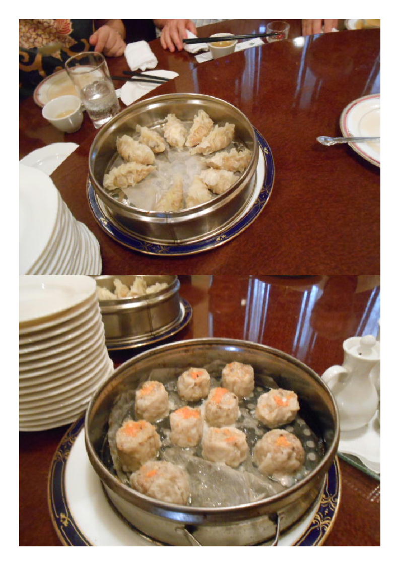 つづいて、④点心(フカヒレ入り「シュウマイ」「餃子」)。これが、非常に美味しい物。薄皮の状態で作られている。当然自家製、無視具合も丁度良い。味も十分についている。そのままの方が美味しかったが、酢を少しつけるとなかなか美味しかった。