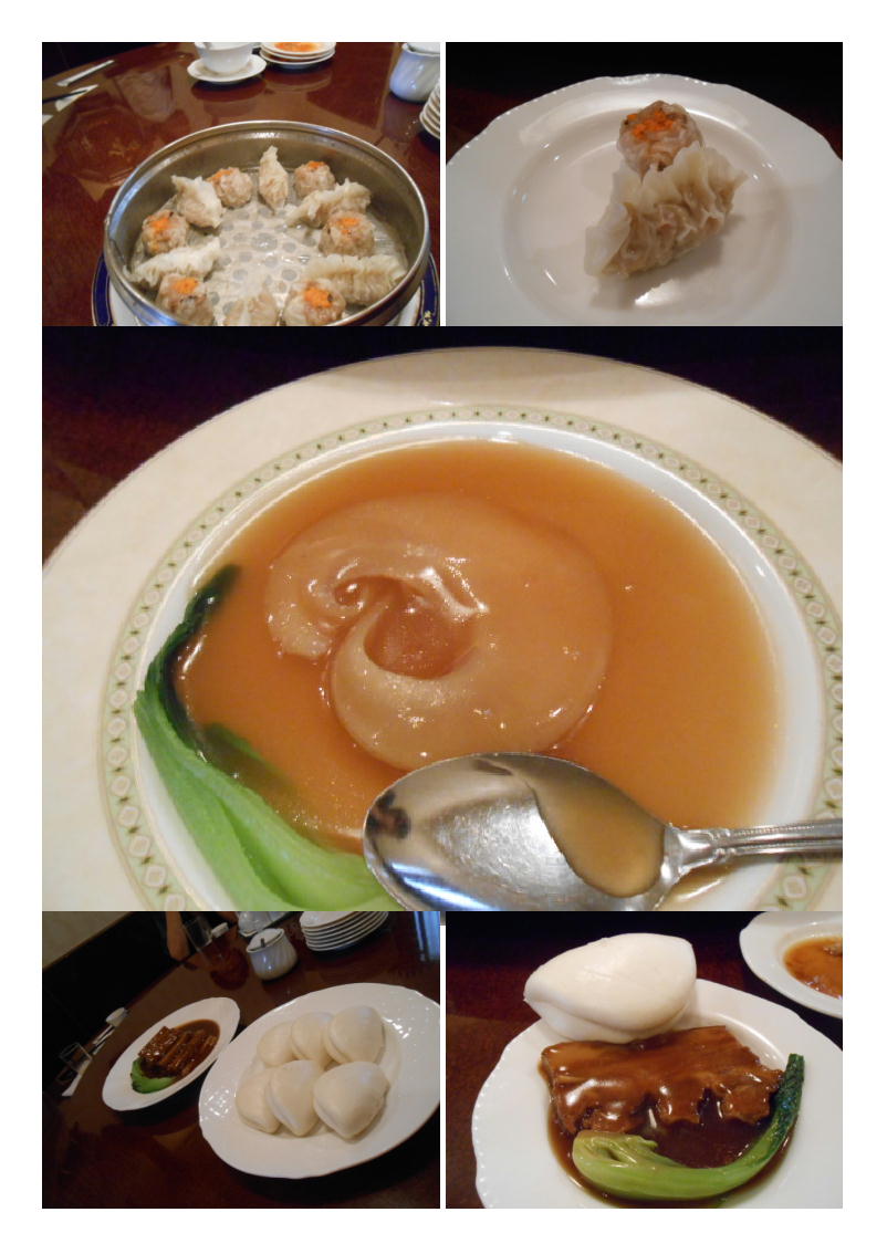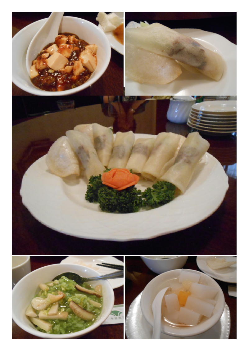 続いて、点心⑦自家製シュウマイ⑧海老と大根の春巻き。おなかが一杯になってくる。加えて、予定にはながった⑨海草入りフカヒレスープ。風味がきいた一品。美味しいものでした。全体的に、コース料理は素材を生かした優しい味。いろいろ食べてももたれない。当然油分も少ない。