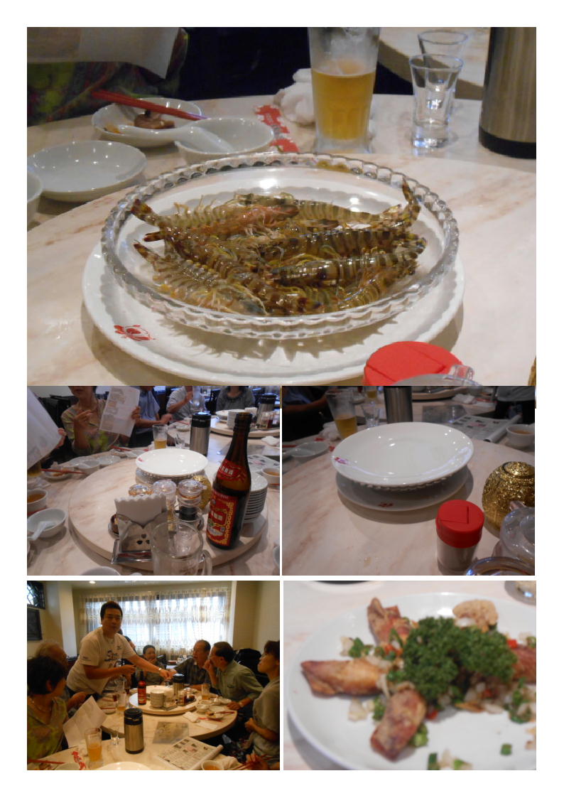 今日の弐番手は、②アワビ入りフカヒレスープ。何も言わずとも、一人のサービスがつききっりで取り分けてくれる。今日の味はやや濃いような気がするので注文はしてみた。次は③大(芝)エビのチリソース。なかなか大きなエビが今日も殻付きで出された。私は殻のまま食べたが、女性にはやや堅かったようである。