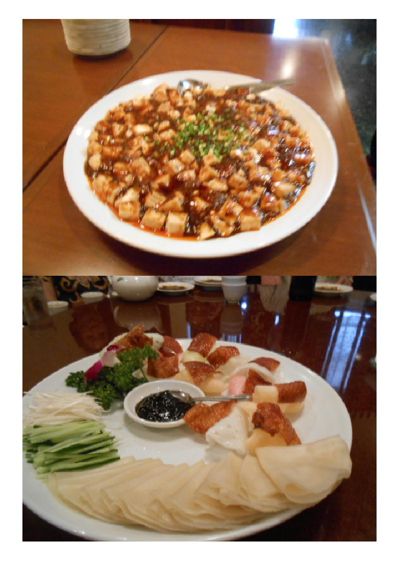 そのあとは、⑦麻婆豆腐。優しい辛さが丁度良い味付けだった。胃袋にも最後に刺激を与えてくれたようである。しばらくして⑧北京ダック。残念だったのは、包まれて出されたこと。せっかくだから自ら包んで食べ見たかった。こういう形だと確かに、食べやすいが、臨場感に欠ける。