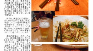 今日は、魚が小さかったらしく、3匹の盛り合わせ、十分にあげられていたので、当然すべてを食べることができた。味も十分につけられている、食べてみればやはり中華味、八角の香りもする。小さいだけに身はあまりついていないが、香ばしく私は好きな味である。これまたビールが進む。私は3杯呑んでしまった。