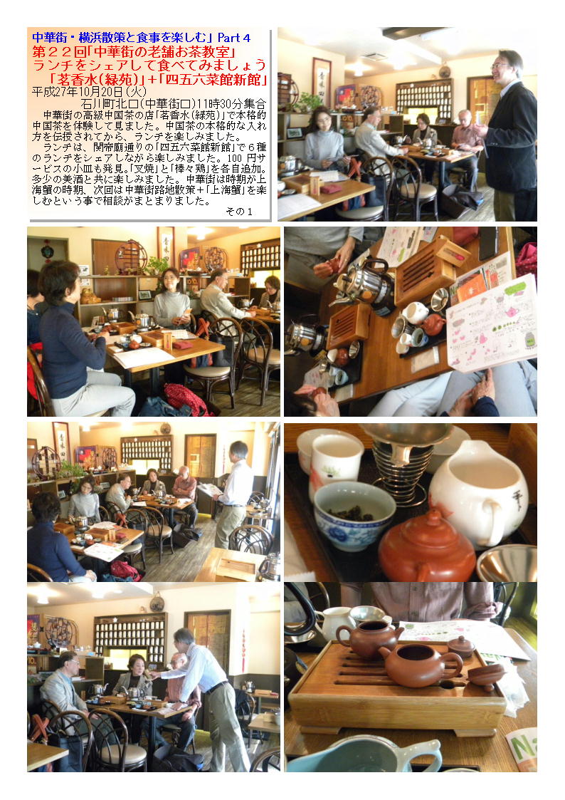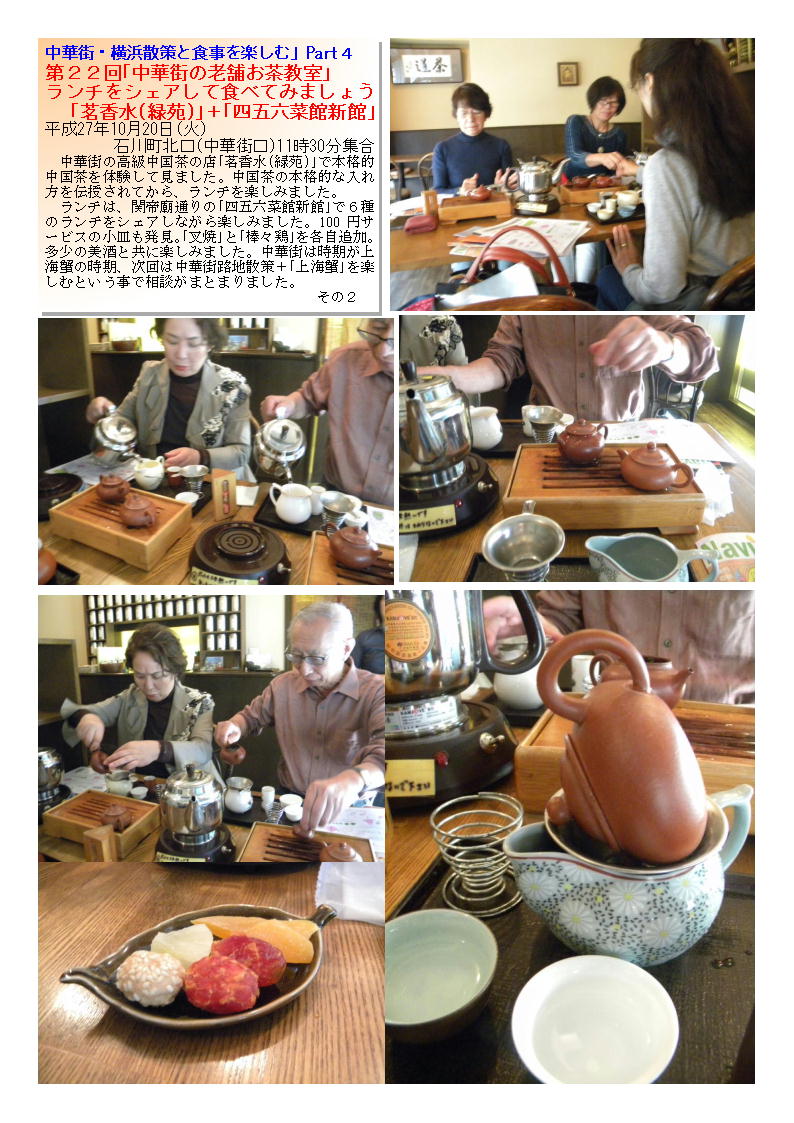 中華街の高級中国茶の店「茗香水(緑苑)」で本格的中国茶を体験して見ました。中国茶の本格的な入れ方を伝授されてから、ランチを楽しみました。