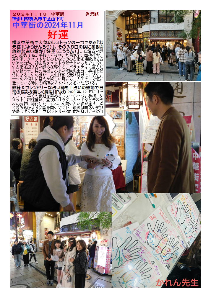 横浜中華街で人気のレストランの一つである『状元樓(じょうげんろう)』。その入り口の横にある開放的な占い館が「好運(こううん)」。
