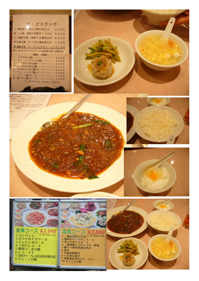 暑いときだったので,サ-ビスとして冷や奴が付くように店頭になっていた。しかし,店内ではザ-サイの代わりに冷や奴だけが提供されただけである。「豚肉と野菜炒め」を頼んでみたがまずいまでは行かないが,味付けにこくがない。我が家でよくただされるレトルト(お袋)の味に似ている。野菜と言っても,ほとんどタケノコであり,処理が悪くタケノコ独特の臭みが残ったままであった。あまり勧められる店ではない。