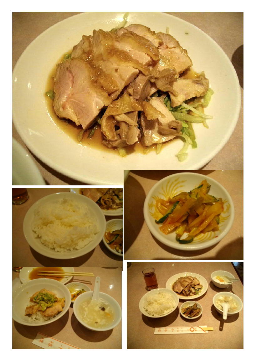 トイレに行っている間に料理が到着していた。想像とは違う(蒸し)鶏肉の醤油掛けソースのような物。まさしくそれ。冷たい料理である。薄く味付けされた鶏肉。量は十分ではあるが、もう少しパンチのある料理を想定していただけに残念。しかし、美味しい。ご飯も進む。今日のスープは、干し椎茸が入った薄味の物。美味しい。