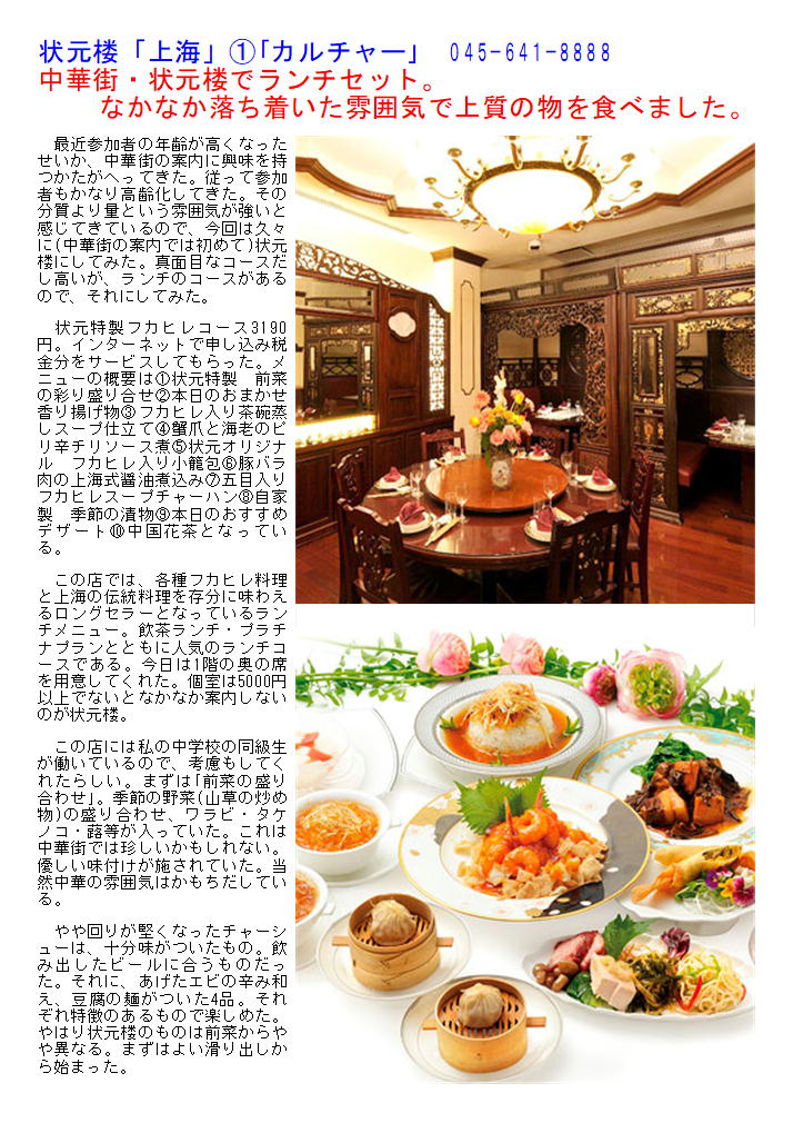 状元楼「上海」①「カルチャー」 045-641-8888