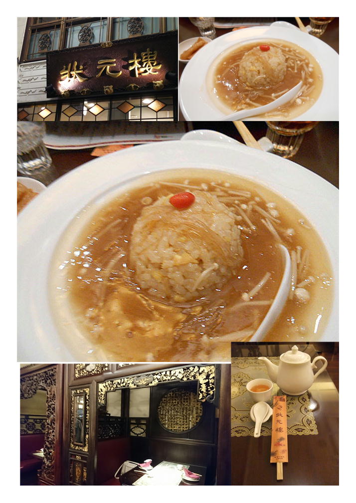 この店では、各種フカヒレ料理と上海の伝統料理を存分に味わえるロングセラーとなっているランチメニュー。飲茶ランチ・プラチナプランとともに人気のランチコースである。今日は1階の奥の席を用意してくれた。個室は5000円以上でないとなかなか案内しないのが状元楼。