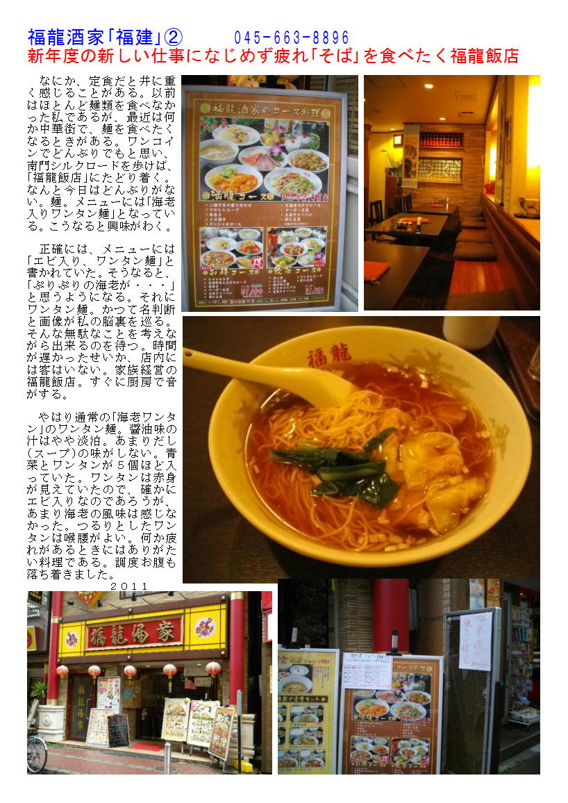 新年度の新しい仕事になじめず疲れ「そば」を食べたく福龍飯店