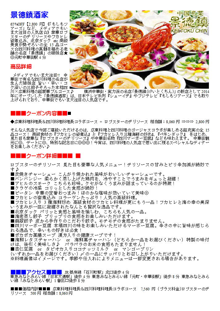 景徳鎮酒家(北門)で確認すれば、おもしろいコース。