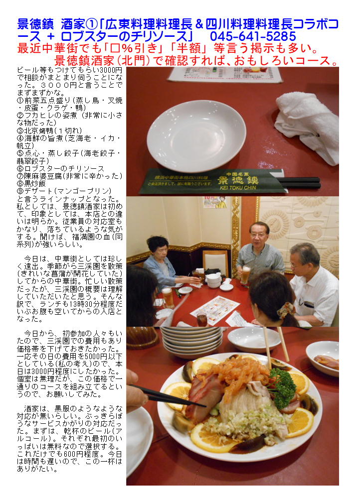 私としては、景徳鎮酒家は初めて、印象としては、本店との違いは明らか。従業員の対応室もかなり、落ちているような気がする。聞けば、福満園の血(同系列)が強いらしい。