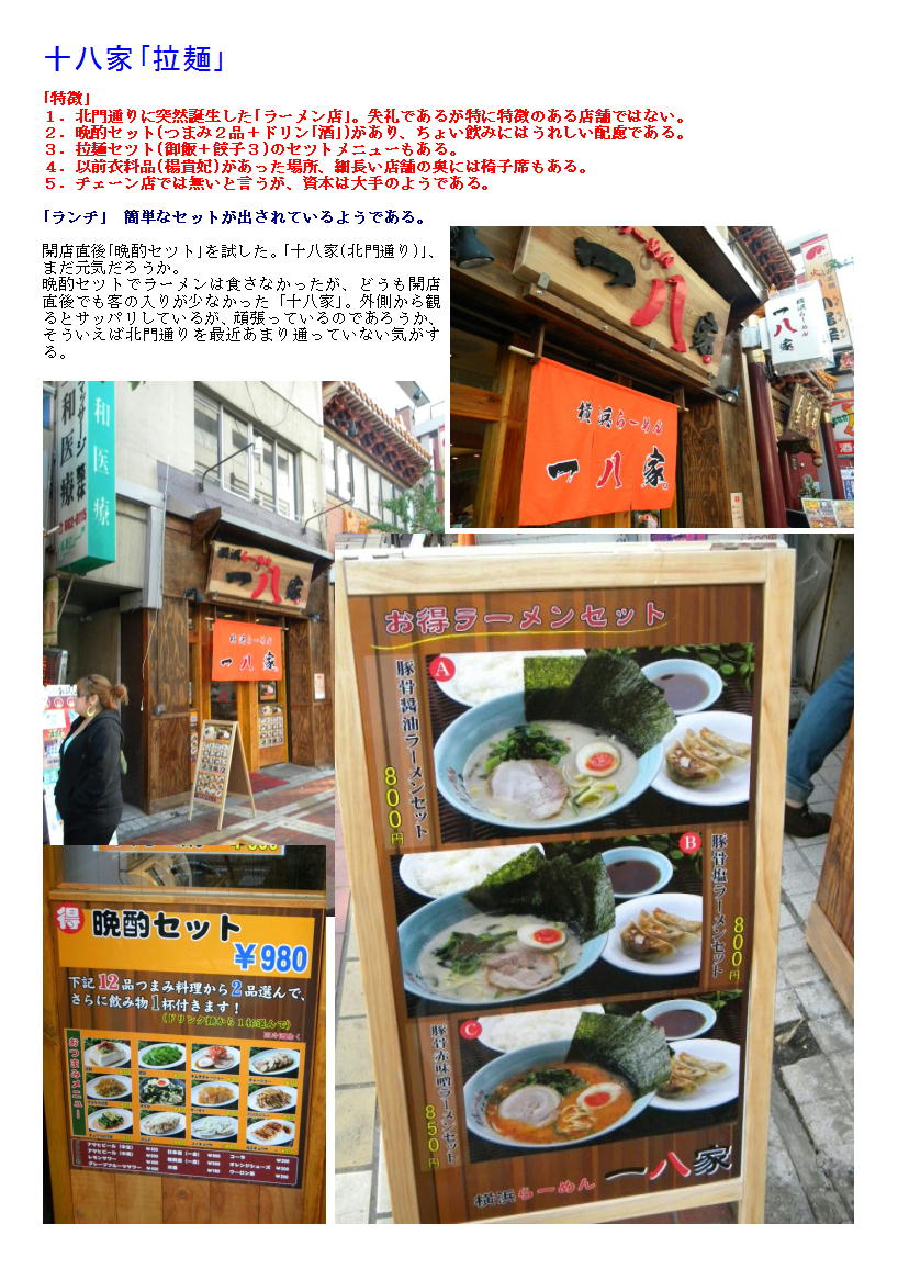 晩酌セツトでラーメンは食さなかったが、どうも開店直後でも客の入りが少なかった「十八家」。外側から観るとサッパリしているが、頑張っているのであろうか、そういえば北門通りを最近あまり通っていない気がする。