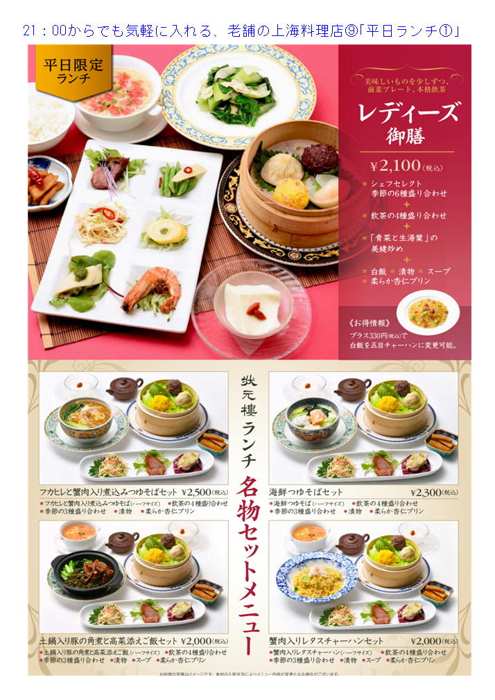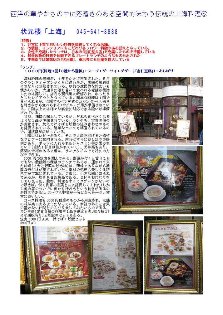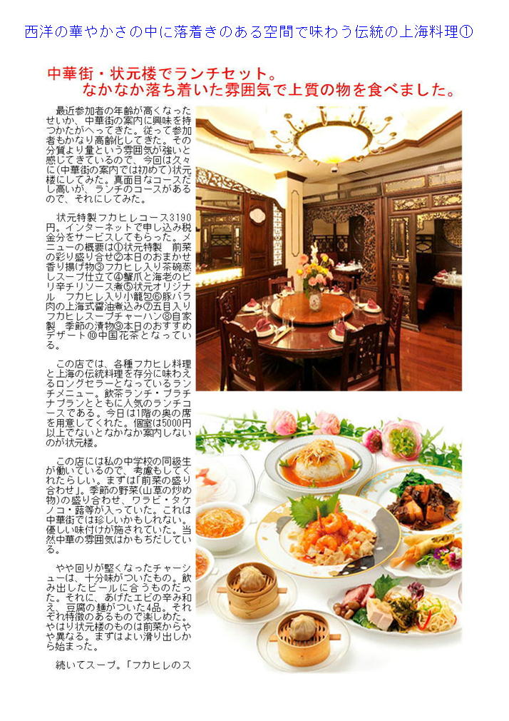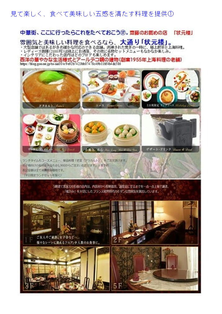 3.おしゃれで落ち着いて丁寧なサービス。美味しい上海料理であれば、「状元楼」。
