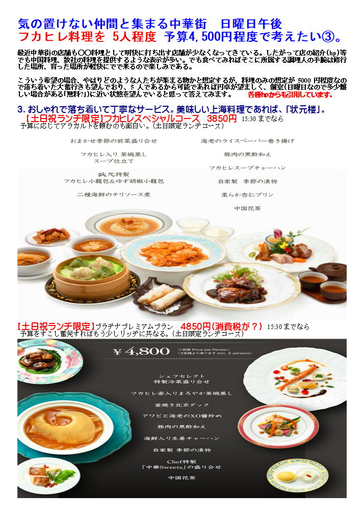 フカヒレ料理を 5人程度 予算4,500円程度で考えたい③。