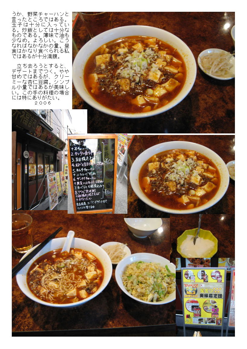 本来は600円迄のランチ出紹介したかった。しかしながら、最近「マーボー麺+半炒飯630円」のメニュー掲示に変更。大台を超えてしまった。しかし、気になるメニュー。食べて見ることにした。ここは黒が粥で有名な店。何度かおとづれている。以前「生ビール3杯1000円」で提供してくれていたが、掲示はない。