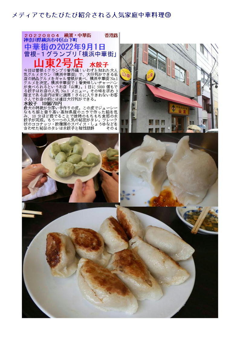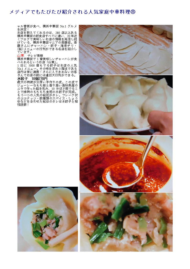 5.行列が出来る老舗、名物の水餃子。点心・家庭料理も楽しめる「山東」