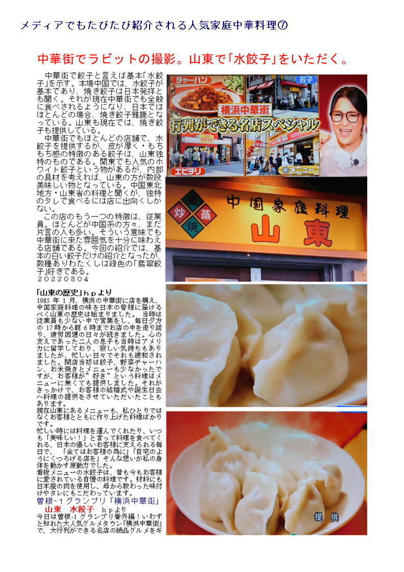 データーはライブドアーブログに掲載します。「中華街の魅力」