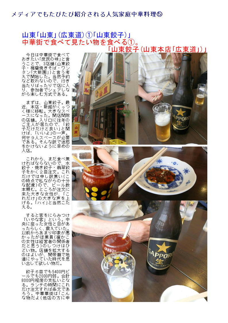 最近中華街の店舗も○○料理として明快に打ち出す店舗が少なくなってきている。したがって店の紹介(hp)等でも中国料理、数社の料理を提供するような表示が多い。でも食べてみればそこに所属する調理人の手腕は修行した場所、育った場所が軽快にでで来るので楽しみである。