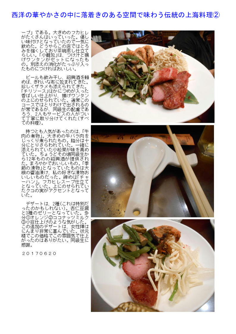 最近中華街の店舗も○○料理として明快に打ち出す店舗が少なくなってきている。したがって店の紹介(hp)等でも中国料理、数社の料理を提供するような表示が多い。でも食べてみればそこに所属する調理人の手腕は修行した場所、育った場所が軽快にでで来るので楽しみである。