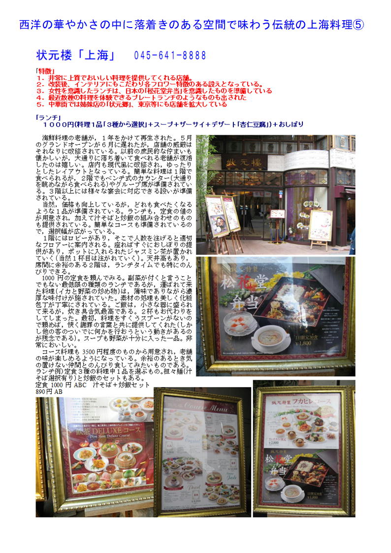 データーはライブドアーブログに掲載します。「中華街の魅力」