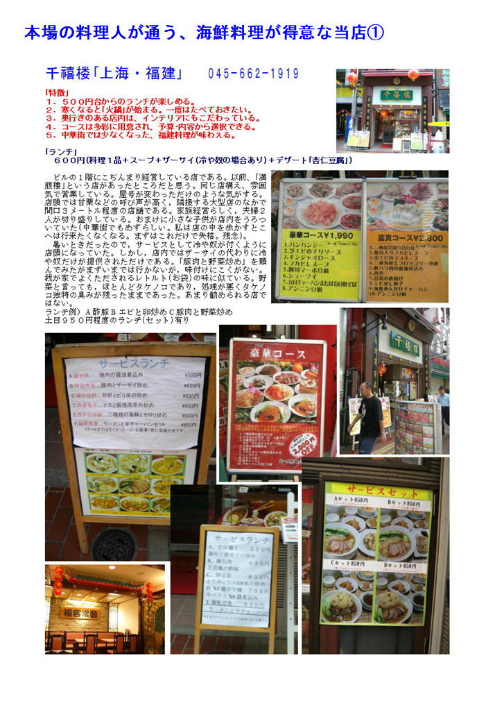データーはライブドアーブログに掲載します。「中華街の魅力」