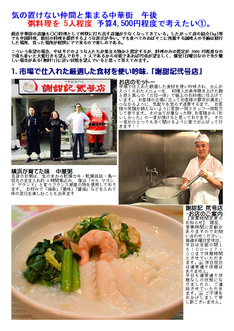 データーはライブドアーブログに掲載します。「中華街の魅力」