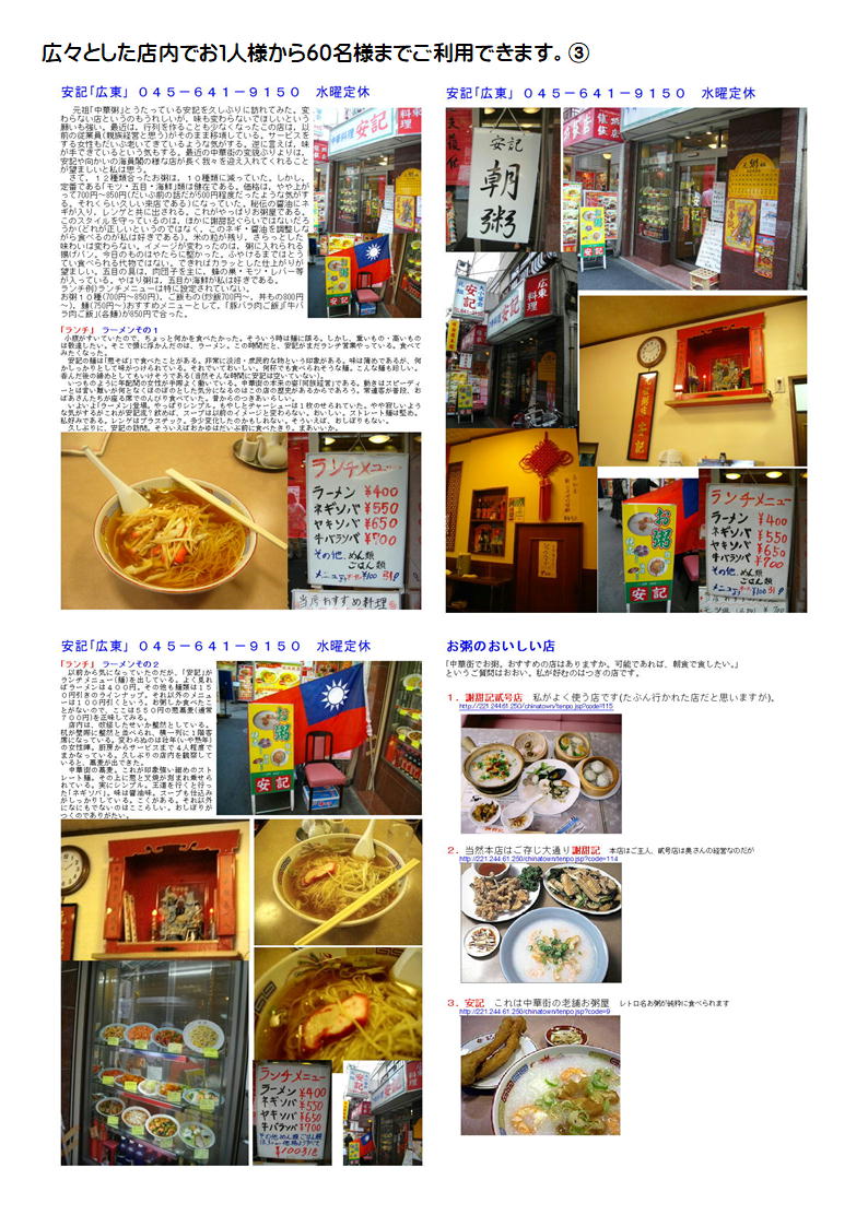 データーはライブドアーブログに掲載します。「中華街の魅力」