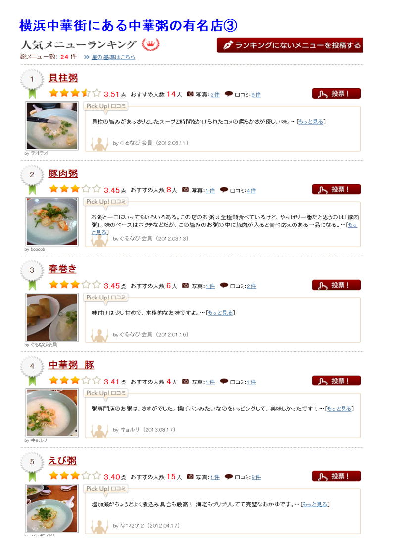 データーはライブドアーブログに掲載します。「中華街の魅力」