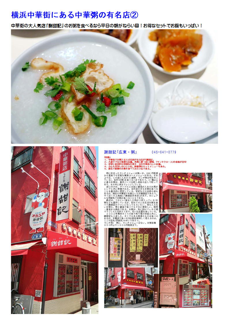 1.中華街でお粥と言えば名前が出る店が「謝甜記。