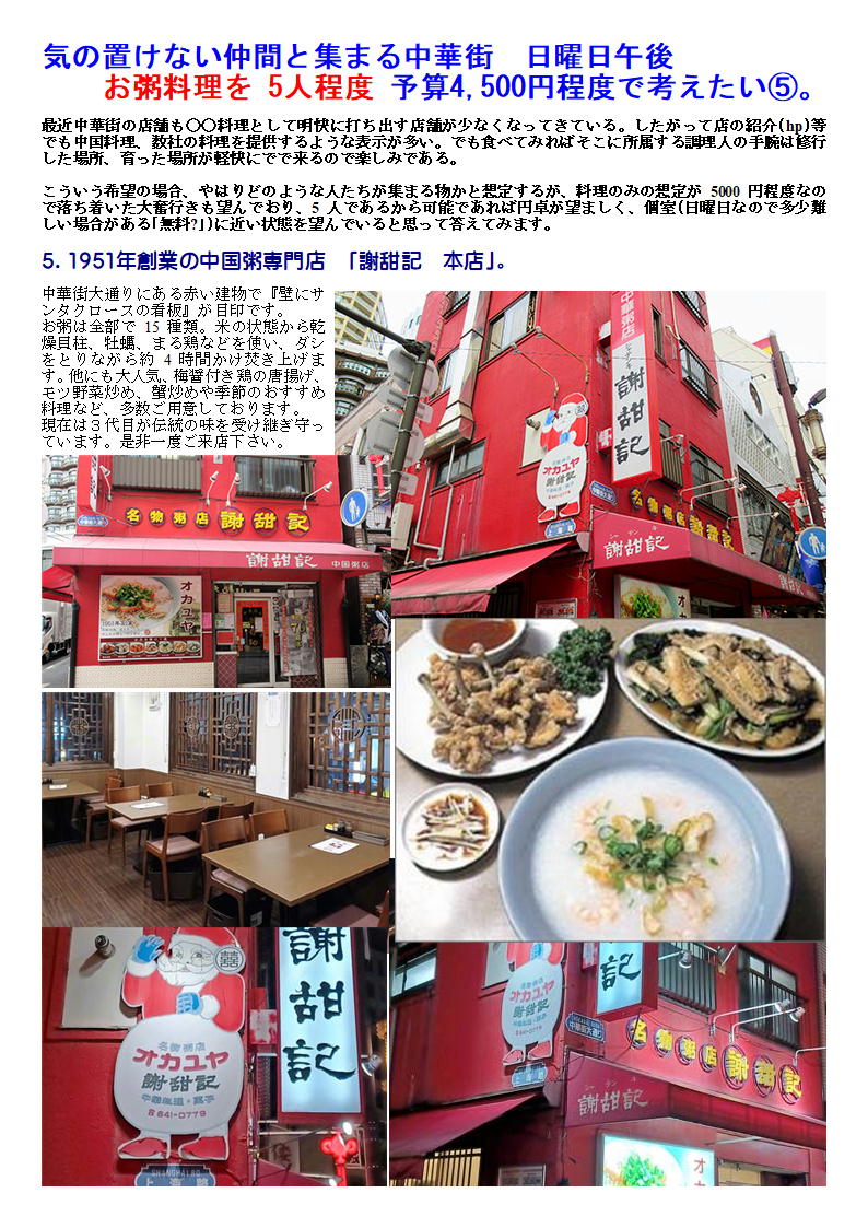 5.1951年創業の中国粥専門店 「謝甜記 本店」。