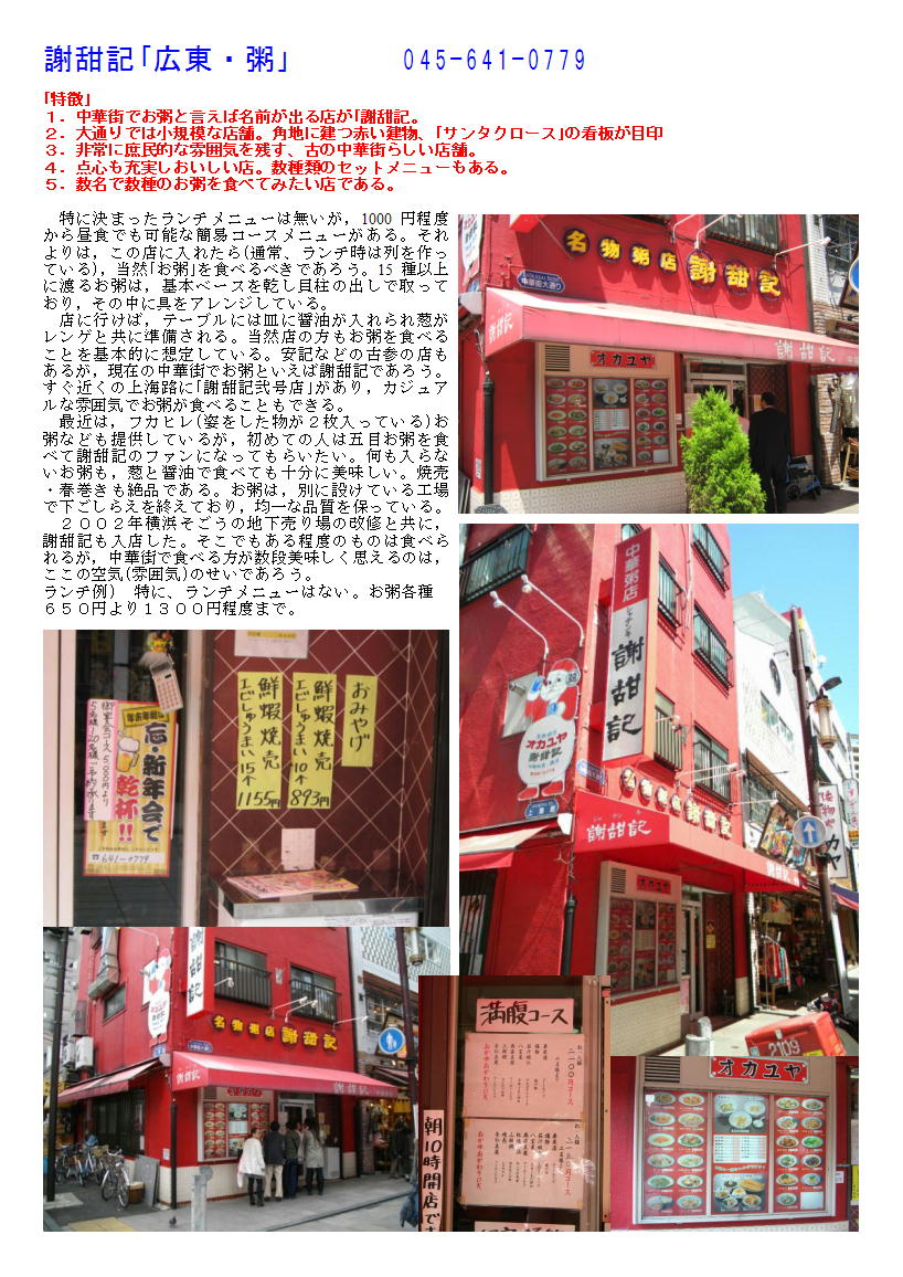 謝甜記「広東・粥」 045-641-0779