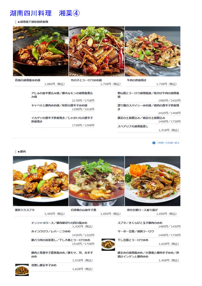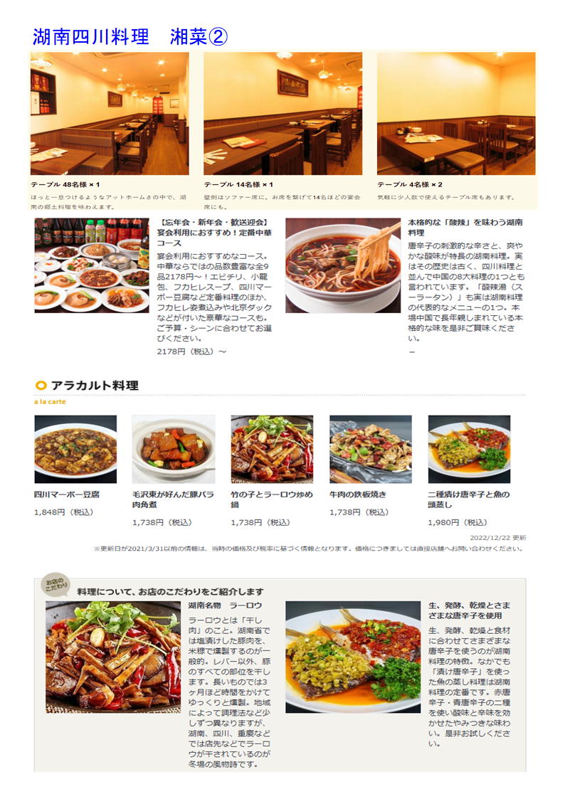 本格的な湖南料理は、唐辛子の刺激的な辛さと、爽やかな酸味が特長です。辛さの中に「香り」と「旨味」が凝縮されている「香辛」な風味が料理に全体に広がります!