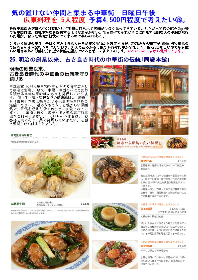 広東料理を 5人程度 予算4,500円程度で考えたい㉖。