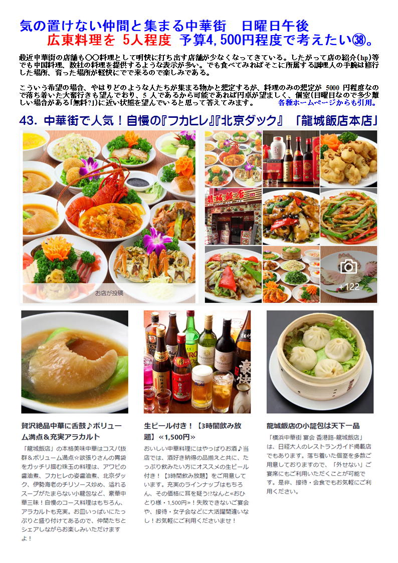 43. 中華街で人気!自慢の『フカヒレ』『北京ダック』