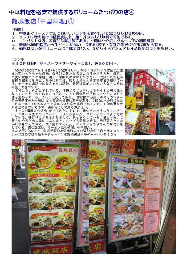 最近中華街の店舗も○○料理として明快に打ち出す店舗が少なくなってきている。したがって店の紹介(hp)等でも中国料理、数社の料理を提供するような表示が多い。でも食べてみればそこに所属する調理人の手腕は修行した場所、育った場所が軽快にでで来るので楽しみである。
