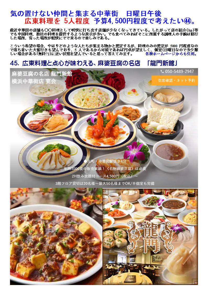 広東料理を 5人程度 予算4,500円程度で考えたい41 。