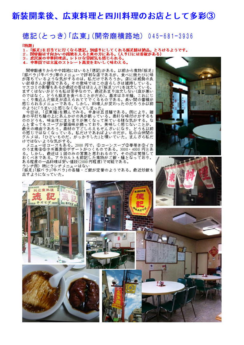 最近中華街の店舗も○○料理として明快に打ち出す店舗が少なくなってきている。したがって店の紹介(hp)等でも中国料理、数社の料理を提供するような表示が多い。でも食べてみればそこに所属する調理人の手腕は修行した場所、育った場所が軽快にでで来るので楽しみである。