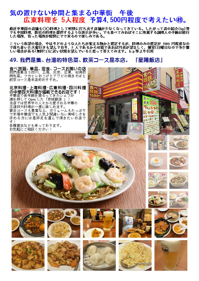49.我們是集、台湾的特色菜、飲茶コース是本店。 「星陽飯店」